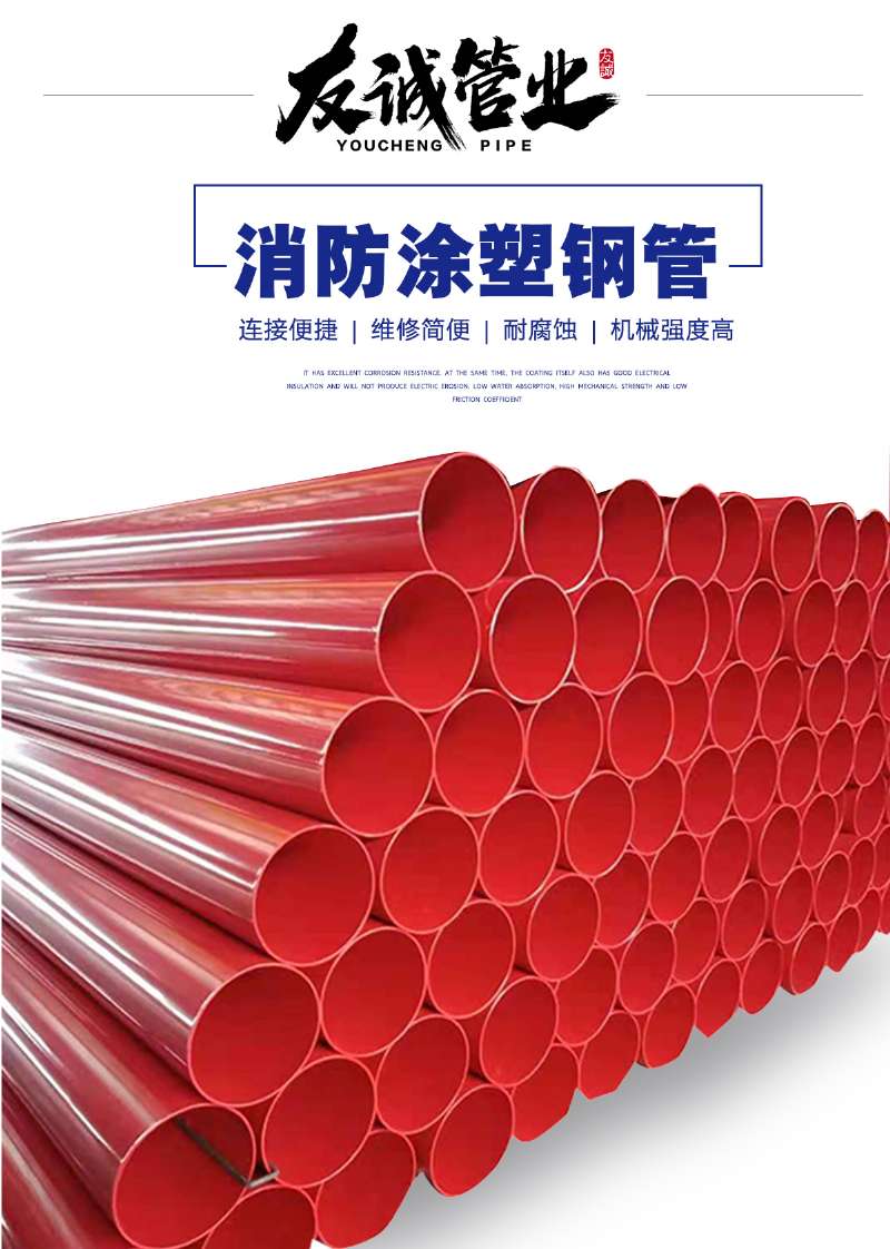 消防涂塑鋼管,以鋼管為基管,外壁涂裝高附著力、抗沖擊性、防腐耐候型的熱固性粉末涂料,內(nèi)壁涂裝高附著力、防腐、食品級衛(wèi)生型的熱塑性粉末涂料。 采用噴砂化學雙重前處理、預(yù)熱、內(nèi)涂裝、外涂裝、固化、后處理等工藝,制成的給水內(nèi)外涂塑復合鋼管,是傳統(tǒng)鋼塑管、鍍鋅管升級型的高性價比產(chǎn)品。產(chǎn)品通