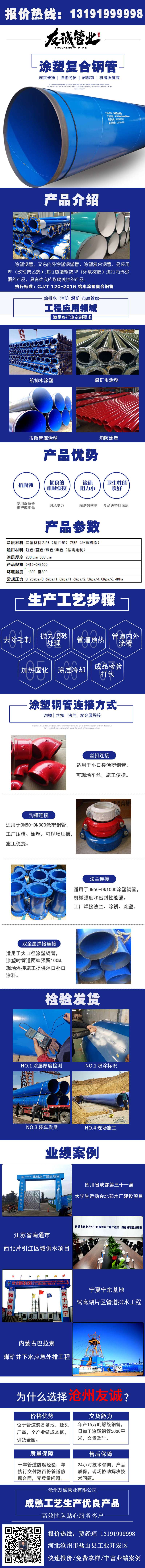 內(nèi)外涂塑無縫鋼管,涂塑鋼管,又名鋼塑復(fù)合管、涂塑復(fù)合鋼管,是采用PE(改性聚乙烯)進(jìn)行熱浸塑或EP(環(huán)氧樹脂)進(jìn)行內(nèi)外涂覆的產(chǎn)品,具有優(yōu)良的耐腐蝕性能。同時涂層本身還具有良好的電氣絕緣性,不會產(chǎn)生電蝕。吸水率低,機(jī)械強(qiáng)度高,摩擦系數(shù)小,能夠達(dá)到長期使用的目的。還能有效的防止植物根系及土壤環(huán)境應(yīng)力的破壞等。連接便捷、維修簡便。