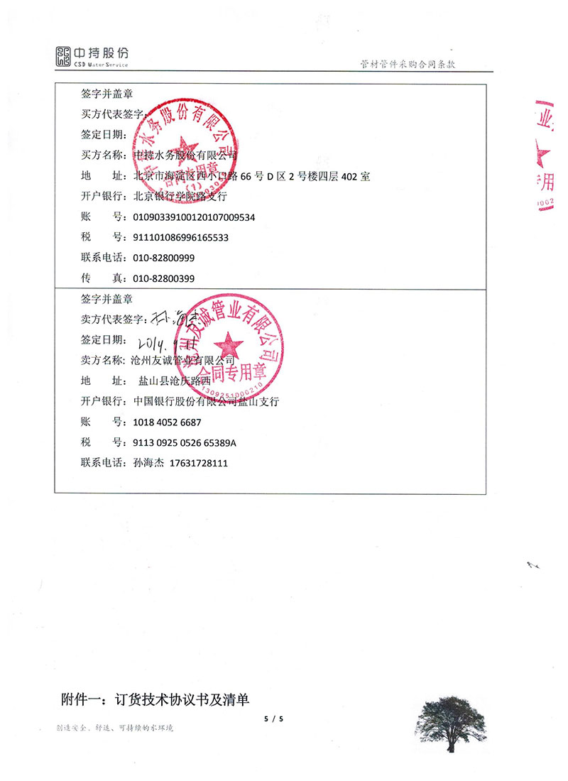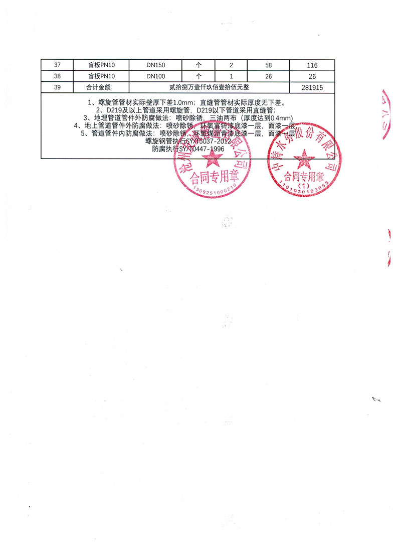 2019年9月份,友誠(chéng)管業(yè)與中持水務(wù)股份有限公司(上市公司),簽訂了原陽(yáng)縣污水處理廠項(xiàng)目的防腐螺旋鋼管合同,非常感謝貴公司對(duì)我們的信任,我們也一如即讓的做好每一支鋼管